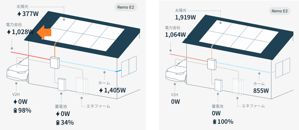 (1)系統電力のW数表示が4桁になると屋根に重なる (4)エネルギー画面、エコキュートの運転有無、お湯の量も表示へ