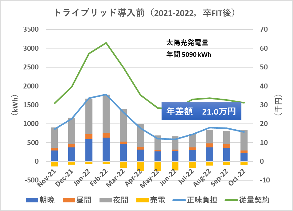 一般的な太陽光導入家庭の電気料金年間推移となっています。