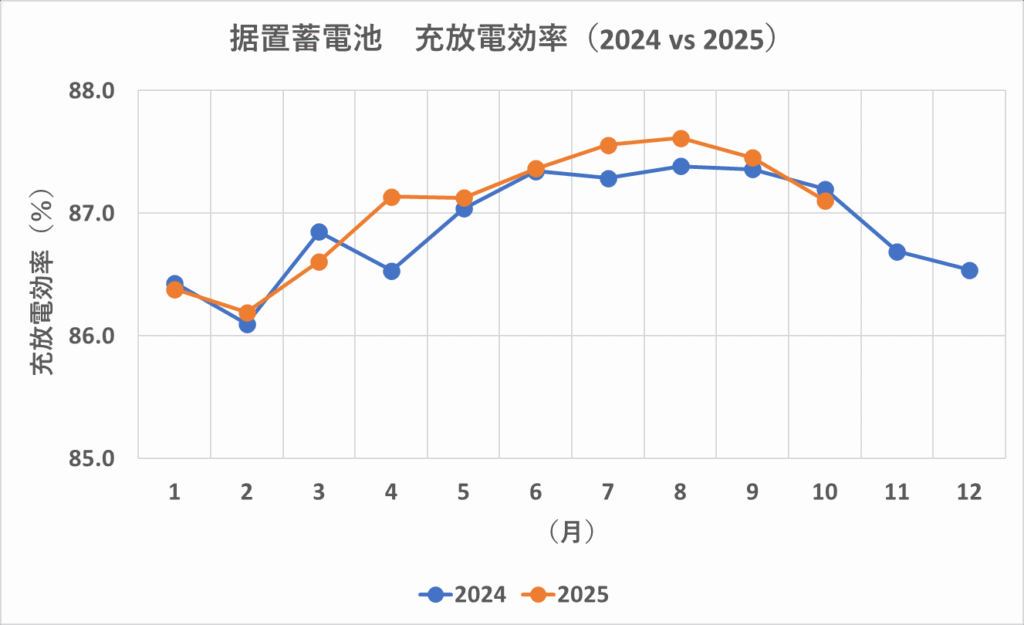 充放電効率は導入後3年間で殆ど劣化は起きておらず、87 % 前後を維持してくれていますv