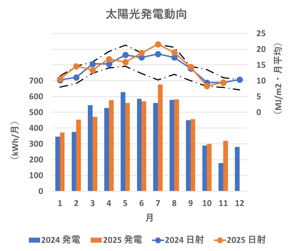 この11月は日射量は昨年並み、