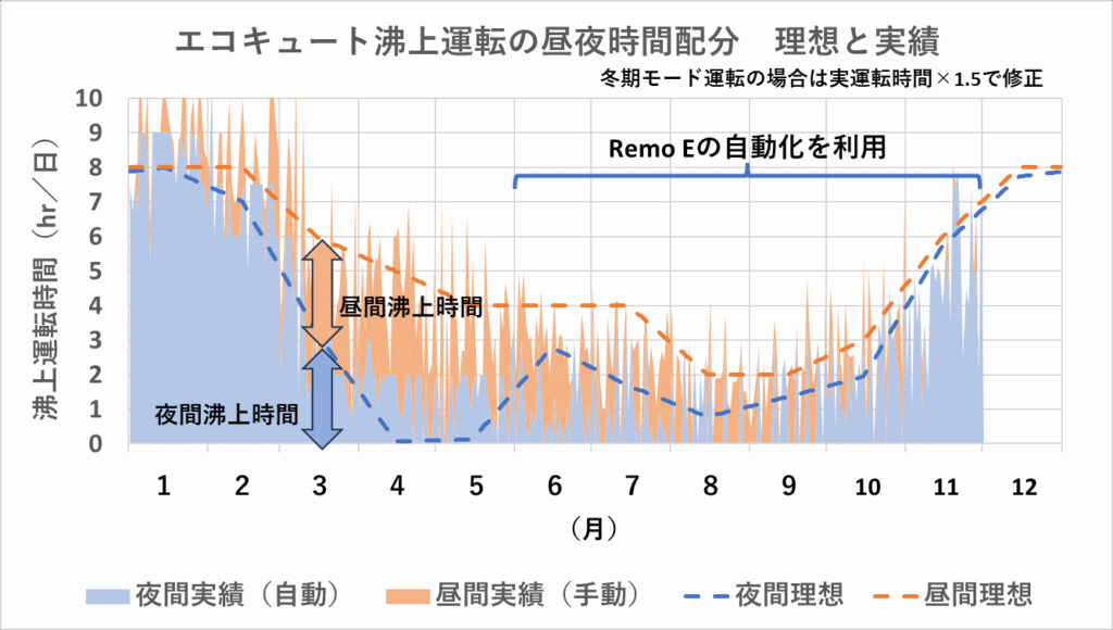 寒くなってくれば、1日の沸上運転の総時間を自動的に増やしてくれています。