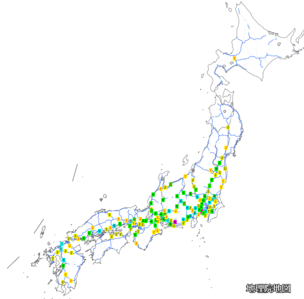 四国は既設の高松・瀬戸大橋付近以外の複数口の新設はありませんでした。